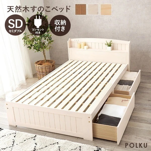 激安価格のベッド セミダブル すのこベッド ベッドフレーム 宮付き 収納付き ベッド下収納 おしゃれ 北欧 木製 引き出し付き すのこ ベット ポルク